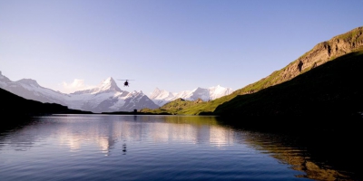 Pernottamento in camera doppia con prima colazione, trasferimento all'eliporto di Gsteigwiler. L'elicottero decolla da qui verso le tre montagne Eiger, Mönch e Jungfrau, famose in tutto il mondo; dopo la Mittellegigrat, si procede verso il rifugio Mönchsjochhütte e la terrazza della Sfinge davanti al Jungfraujoch. Ed ecco aprirsi la vista stupenda sul ghiacciaio, patrimonio mondiale dell'Unesco, volando bassi proprio sopra il ghiacciaio. Ritorno alla base passando per la Jungfrau, il Wengen e il Männlichen.